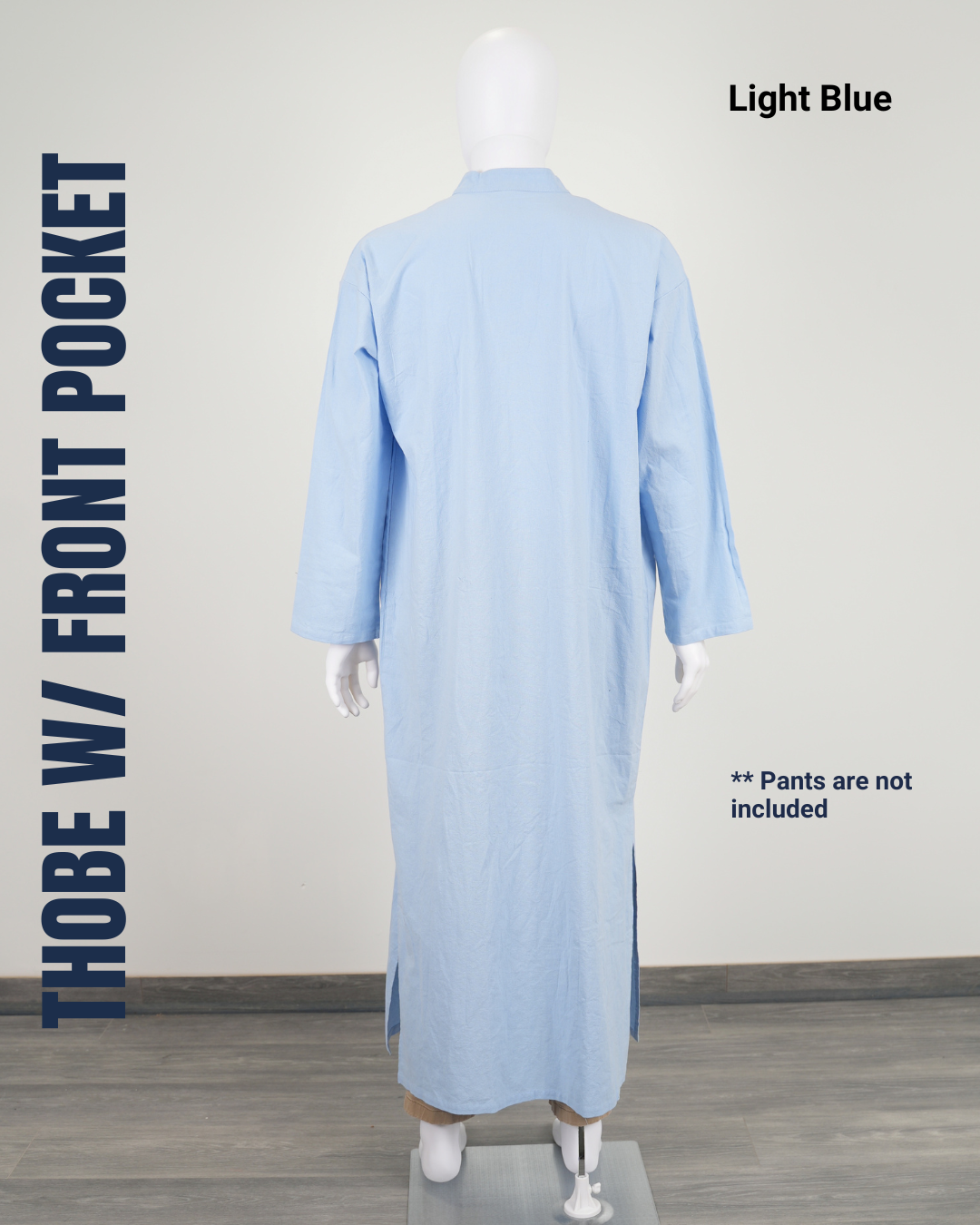 Introducing our Men's Thobe with Front Pocket! Made from lightweight, breathable polyester, it offers elegance and ease for casual wear. The practical front pocket keeps essentials handy. Available in Dark Gray and Light Blue, pair it with sneakers or sandals for any occasion.